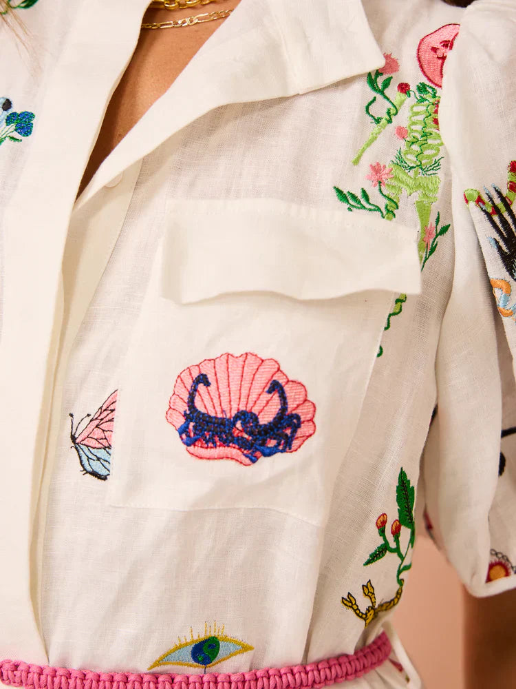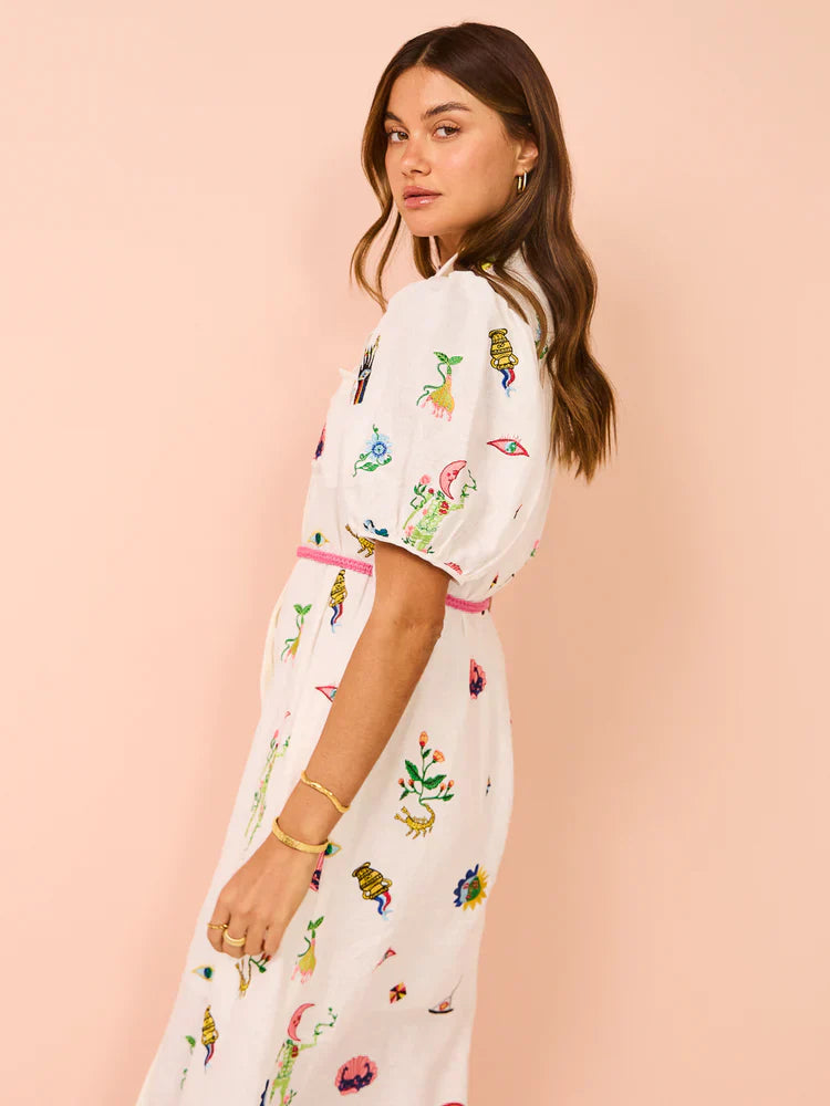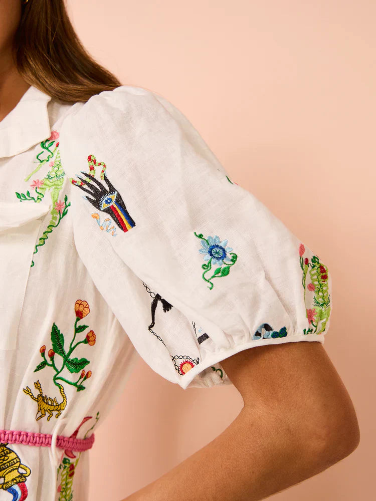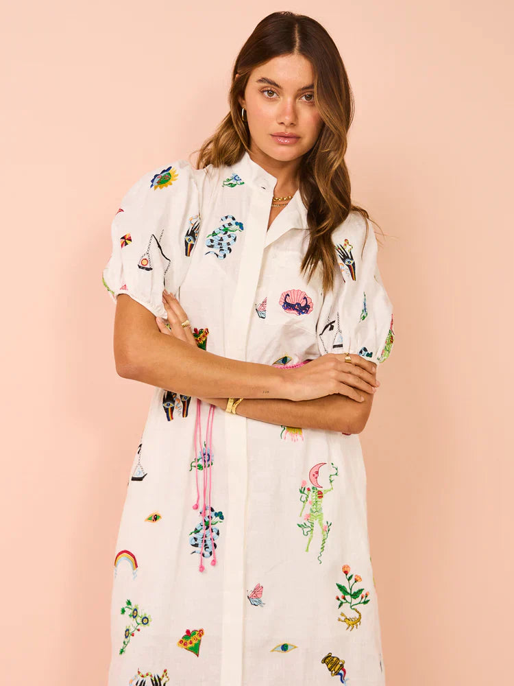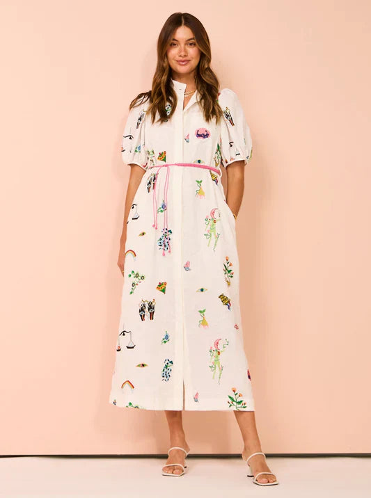 Alms Atticus Embroidered Midi Shirt Dress