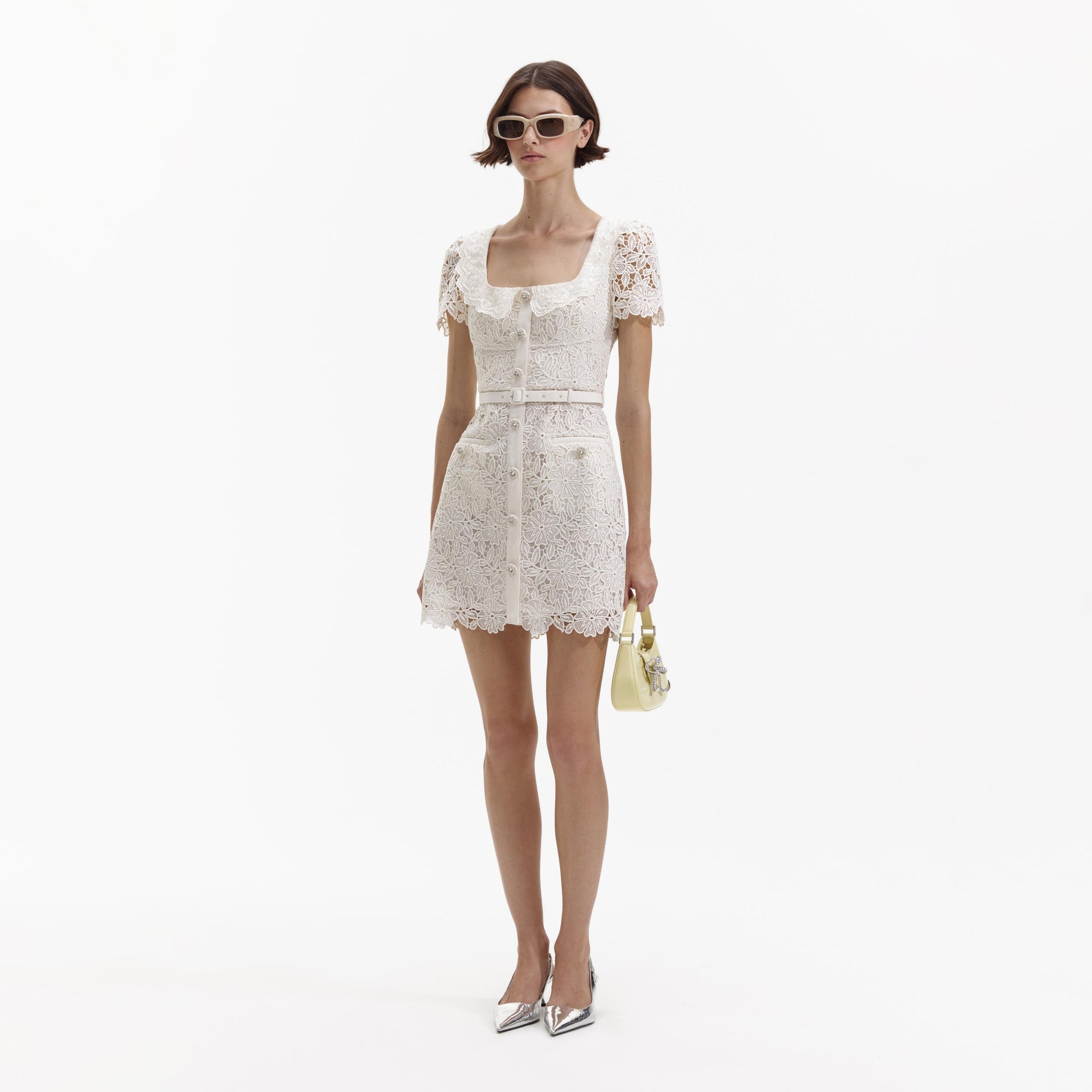 SP Guipure Lace Button Mini Dress