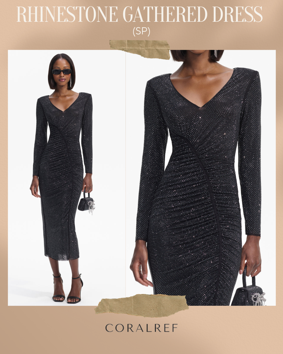 SP Rhinestone Gathered Midi Dress
